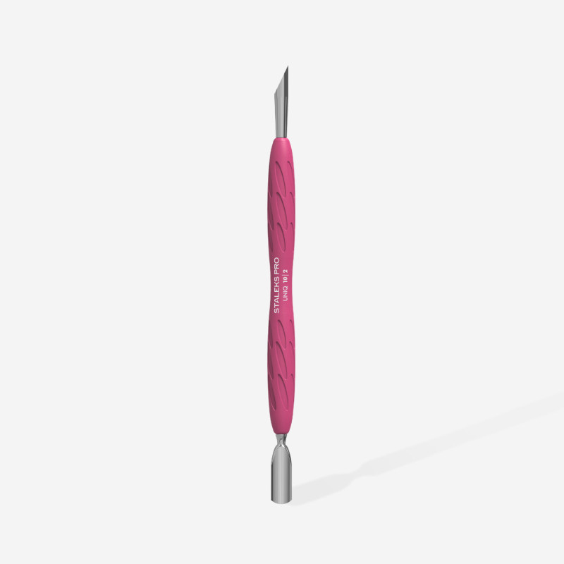 Der Staleks Pro UNIQ Gummy Maniküreschieber PQ-10/2 kombiniert Funktionalität und Komfort für die professionelle Nagelhautpflege.