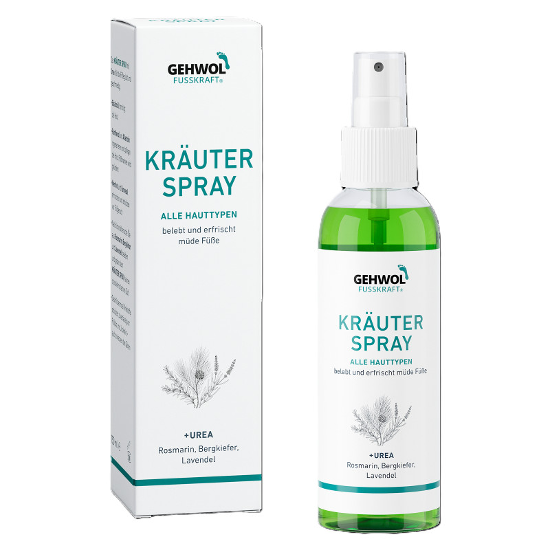 Das KRÄUTER SPRAY mit Urea hält die Füße glatt und geschmeidig.